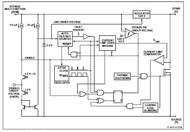 tny275gn features: (1)Simple ON/OFF control, no loop compensation needed; (2)Selectable current limit through BP/M capacitor value; (3)Higher current limit extends peak power or, in open frame applications, maximum continuous power; (4)Lower current limit improves effi ciency in enclosed adapters/chargers; (5)Allows optimum TinySwitch-III choice by swapping devices with no other circuit redesign; (6)Tight I2f parameter tolerance reduces system cost; (7)Maximizes MOSFET and magnetics power delivery; (8)Minimizes max overload power, reducing cost of transformer, primary clamp & secondary components; (9)ON-time extension – extends low line regulation range/hold-up time to reduce input bulk capacitance; (10)Self-biased: no bias winding or bias components; (11)Frequency jittering reduces EMI fi lter costs; (12)Pin-out simplifi es heatsinking to the PCB; (13)SOURCE pins are electrically quiet for low EMI.